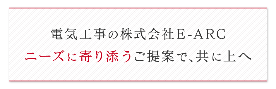 これからも電気工事を通じてお客さまに笑顔をお届けすべく、一つひとつのご依頼に誠心誠意対応してまいります。引き続き株式会社E-ARCにご支援とご愛顧を賜りますようお願い申し上げます。